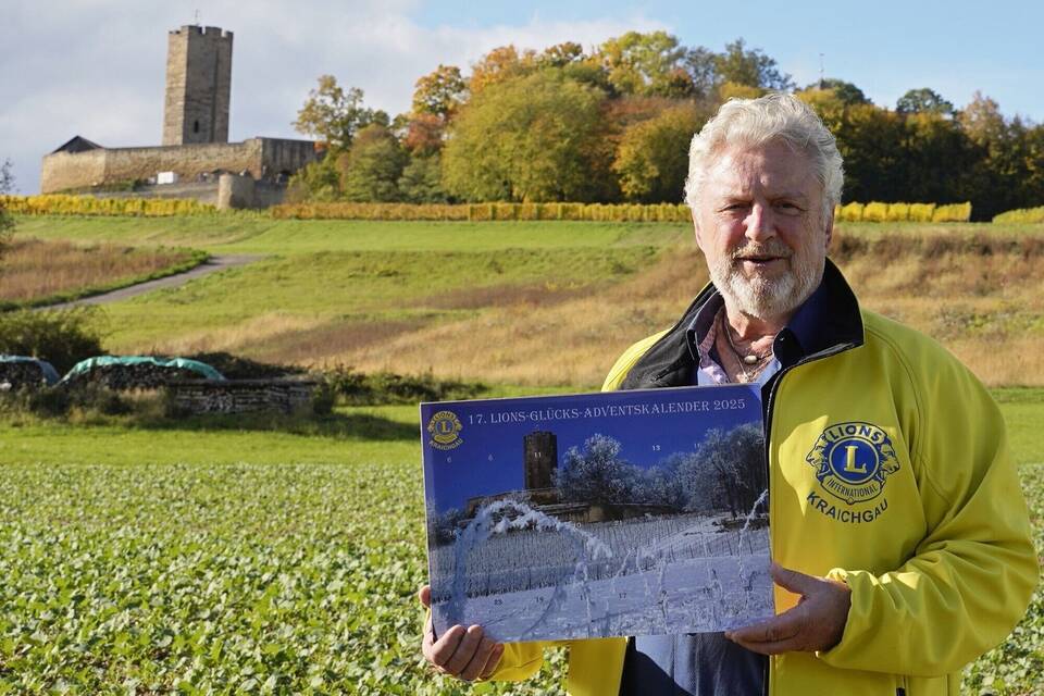 Das Titel-Motiv des Kalenders zeigt die Burg Steinsberg, es wurde von Johann Weis, Mitglied des Foto-Clubs Sinsheim, aufgenommen. Hinter den 24 Kalendertürchen sind Motive von Brigitte Schneider aus Richen zu sehen.