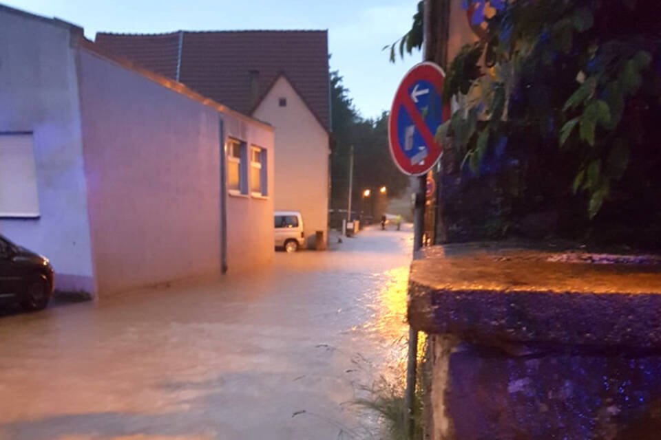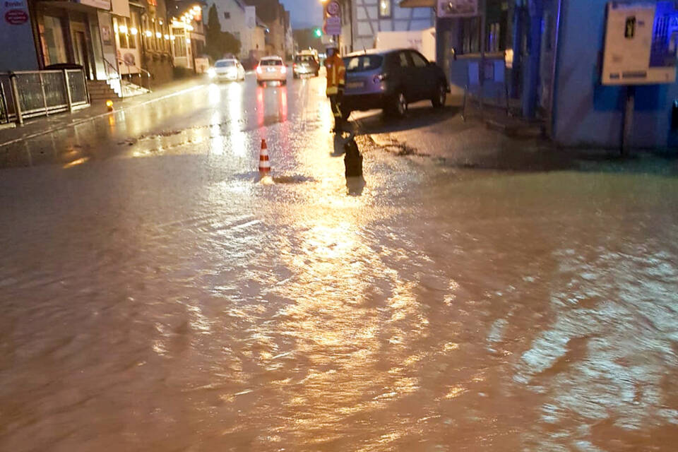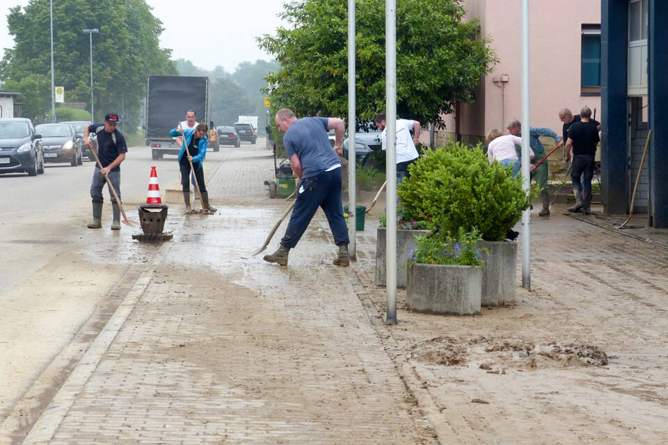 Die Bilanz des Unwetters: vollgelaufene Keller, mit Schlamm verdreckte Innenhöfe. Auch die Ortsdurchfahrt musste gesperrt werden.