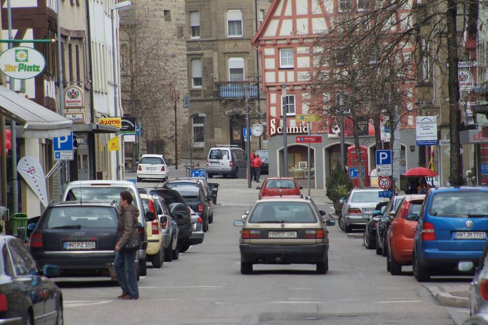 Die Brettener Straße vor vier Jahren: Verkehrsberuhigt, aber zugeparkt und ohne Platz fürs Flanieren. Inzwischen hat die Straße ihren Charakter deutlich gewandelt. Mit der Sperrung der Straße an vier Wochenenden soll nun untersucht werden, welche Auswirkungen eine Fußgängerzone auf Publikumsfrequenz und Einzelhandel hat. Foto: Guzy