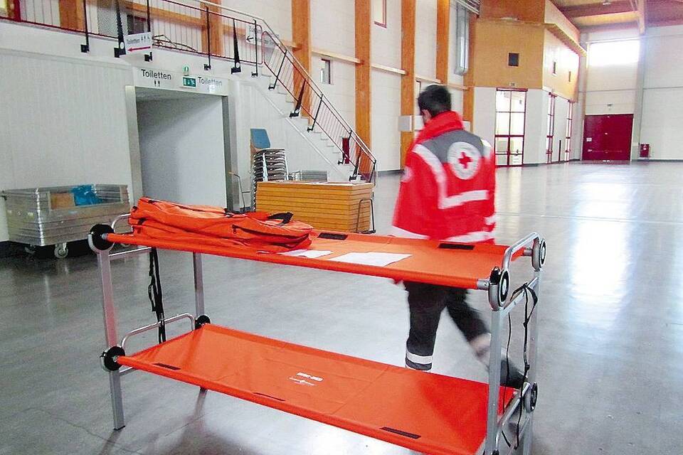 Das DRK hat die Federführung beim Aufbau in der Halle 6. Foto: Kegel