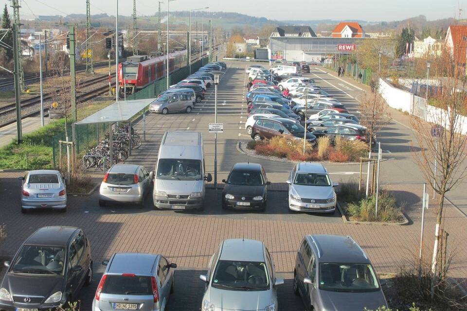 Standort 2: Der Parkplatz neben dem Bahnhof entlang der Bahnlinie Richtung Heidelberg. Schon 2011 zur Frauenfußball-WM war dort ein Parkhaus im Gespräch. Foto: Kächele