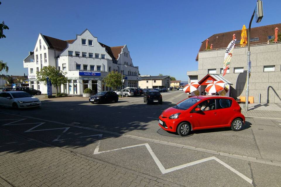 Fast jetzt schon wie im Kreisverkehr: Der Verkehrsfluss an den Abzweigungen Frauenbrunner Straße/Postweg soll durch den Bau eines weiteren Rondells in der Mühlbacher Straße verbessert werden. Der Beschluss dazu fällt voraussichtlich erst nach der Sommerpause. Foto: Guzy