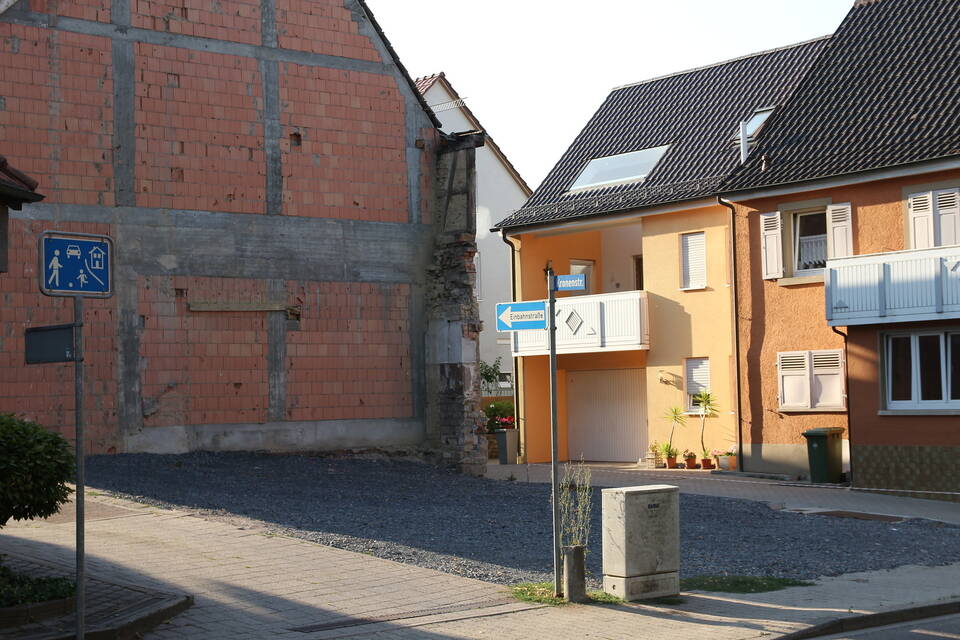 Sulzfeld. Nur der Straßenname auf dem Schild neben dem geschotterten, freien Platz erinnert noch an das einstige Gasthaus Krone, das an der Hauptstraße gegenüber der evangelischen Kirche stand.