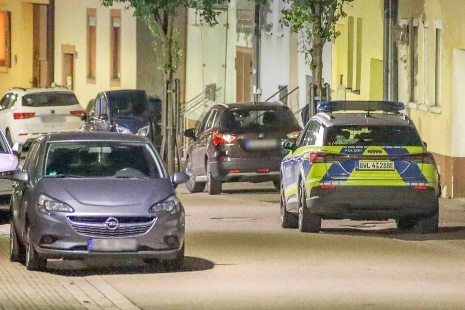 Mehrere Einsatzwagen der Polizei standen vor dem Wohnhaus. Ein Mann wurde vorläufig festgenommen.