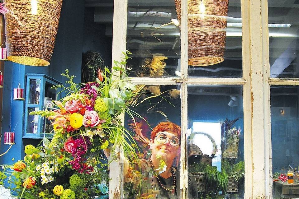 > Sicherheitsvorkehrungen: Im Eingangsbereich vieler Geschäfte finden sich Hinweise, dass sich nur wenige Personen dort gleichzeitig aufhalten dürfen. Desinfektionsmittel steht häufig auf Tischen bereit, außerdem kleben Streifen auf dem Boden, die dazu auffordern, Abstand zu halten. Manche Geschäfte wie das Bücherland, haben getrennte Ein- und Ausgänge gekennzeichnet. Ein Spuckschutz im Kassenbereich findet sich überall, meist aus Plexiglas. Sehr originell mutet die Lösung im Blumengeschäft "Die Binderei" an: Hier wurde an der Theke ein Fenster in Vintage-Optik eingebaut.