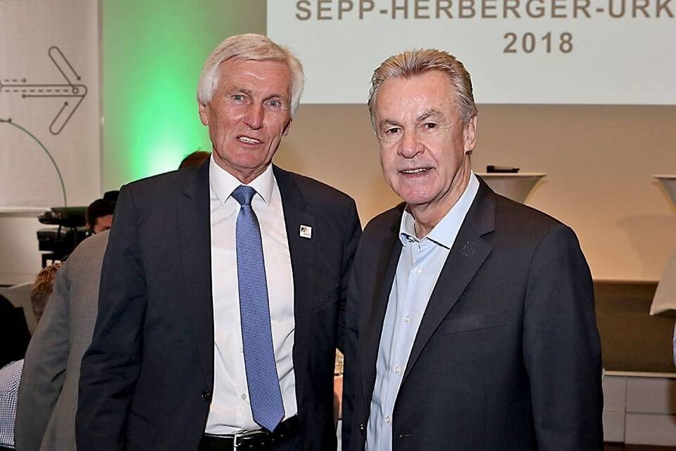 Zusammen in Mannheim: DFB-Vizepräsident Eugen Gehlenborg (l.) und Trainerlegende Ottmar Hitzfeld. Foto: Kobow