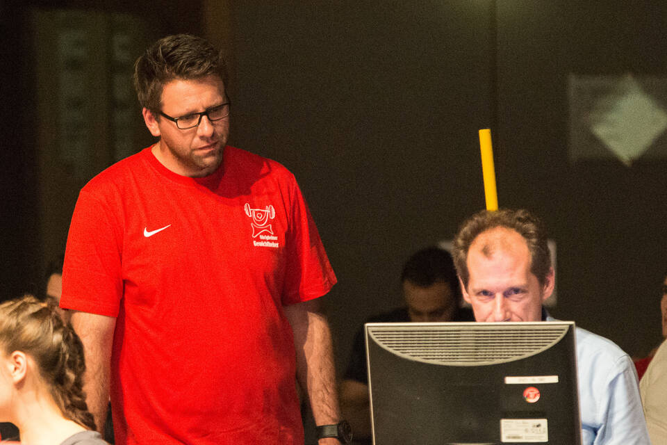 Gemeint ist mit "endlich geschafft" die Tatsache, dass der AC Mutterstadt im Stoßen die bessere Mannschaft war. Mit 504,9:488,3 Punkten entschieden die Pfälzer das Kräftemessen in der zweiten Disziplin für sich. "Wir wussten, dass es eng werden würde", sagt Noe. Zusammen mit seinem Vorgänger Edmund Ehrmann, der während des Wettkampfs den Computer mit aktuellen Daten und Prognosen fütterte, hatte er stets einen präzisen Blick darauf, wie sich Wunsch und Wirklichkeit entwickelten. Laut Hochrechnung hätte Obrigheim das Stoßen hauchdünn, mit 0,7 Kilopunkten, also der Kleinigkeit von 700 Gramm, gewinnen müssen. Doch die Prognose aus dem PC unterschied sich dann doch von dem, was sich auf der Bühne zutrug.