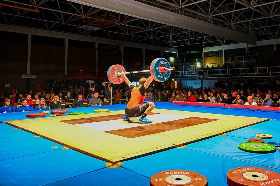 Rund 800 Augenpaare schauten gebannt auf den 33-Jährigen. Der hatte im gleißenden Bühnenlicht Position bezogen. Tief in der Hocke sitzend, schraubte er unablässig seine Hände in die Hantelstange. Nochmal kräftig durchatmen, dann zog er an. Schnell, kraftvoll, unaufhaltsam. Und dann posierte er da: Aufrecht, mit durchgedrückten Knien, die Hantel auf den ausgestreckten Armen fixiert, mit fast lausbubenhafter Miene. Die Neckarhalle stand Kopf, kaum einen hielt es noch auf seinem Sitz. Ein Tollhaus. Franz Hauß rang kurz um Fassung, ehe er mit brüchiger Stimme den "gültigen Versuch" und den Sieg im Reißen verkündete, mit gerade mal 0,8 Punkten Vorsprung für die Gastgeber.
