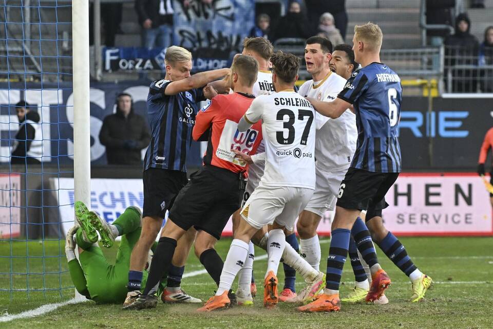 Rings um das Drittliga-Duell herrschte eine extrem vergiftete Atmosphäre. Christian Bönig musste Gerhard Zuber zurückhalten.